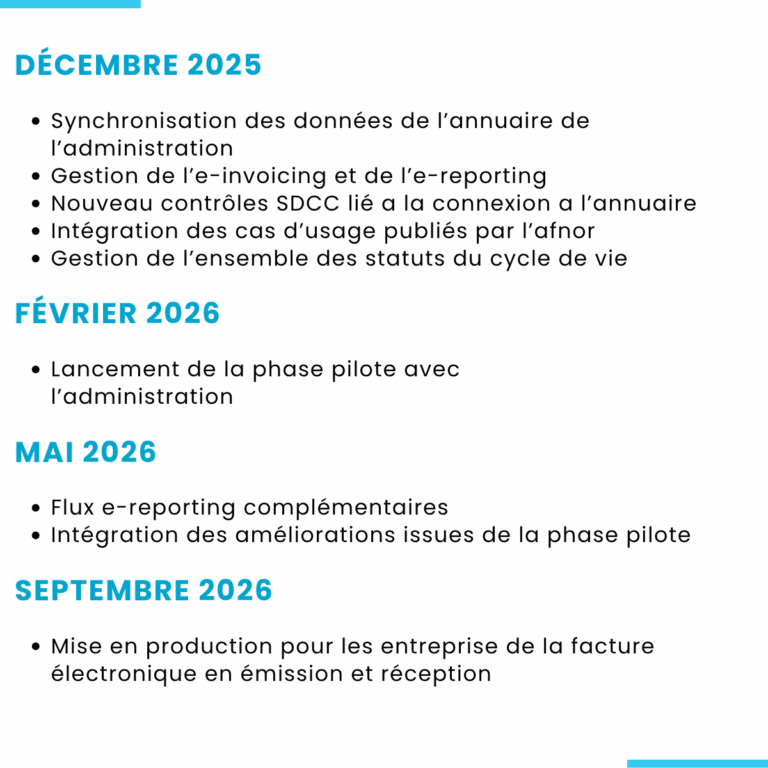 Par exemple, pour Sage 100, le socle de base sera la v12. Des patchs évolutifs pour la facture électronique seront proposés à ces dates :