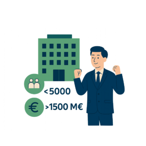 Une grande entreprise est une entreprise dont l’effectif est supérieur à 5000 personnes ou, si son effectif est inférieur à 5000 personnes, dont le chiffre d’affaires annuel est supérieur) 1500 millions d’euros et le total de bilan est supérieur à 2000 millions d’euros.